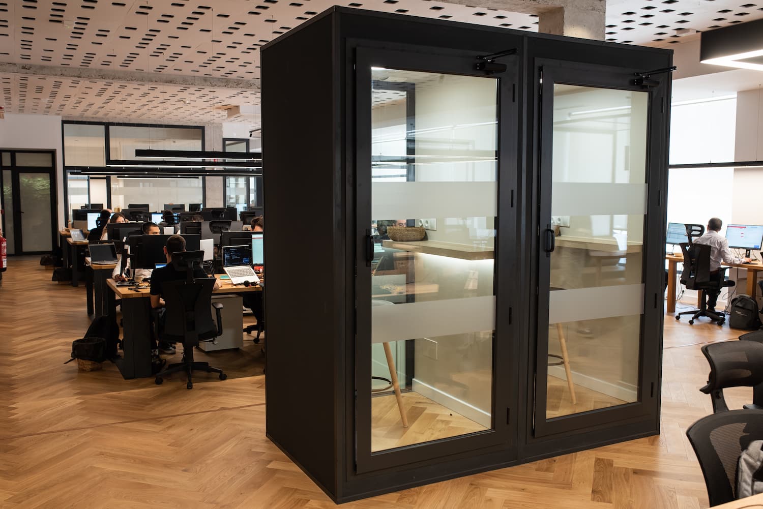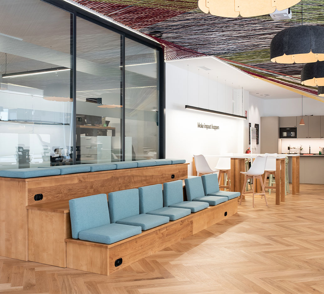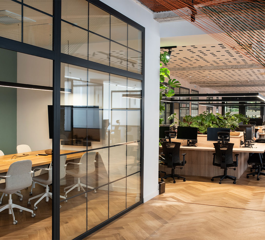 The layout offers a dynamic flow between open workspaces, meeting rooms, private booths, and relaxed breakout zones — all tied together by biophilic design. A vibrant, functional and inspiring environment for modern creators and entrepreneurs.