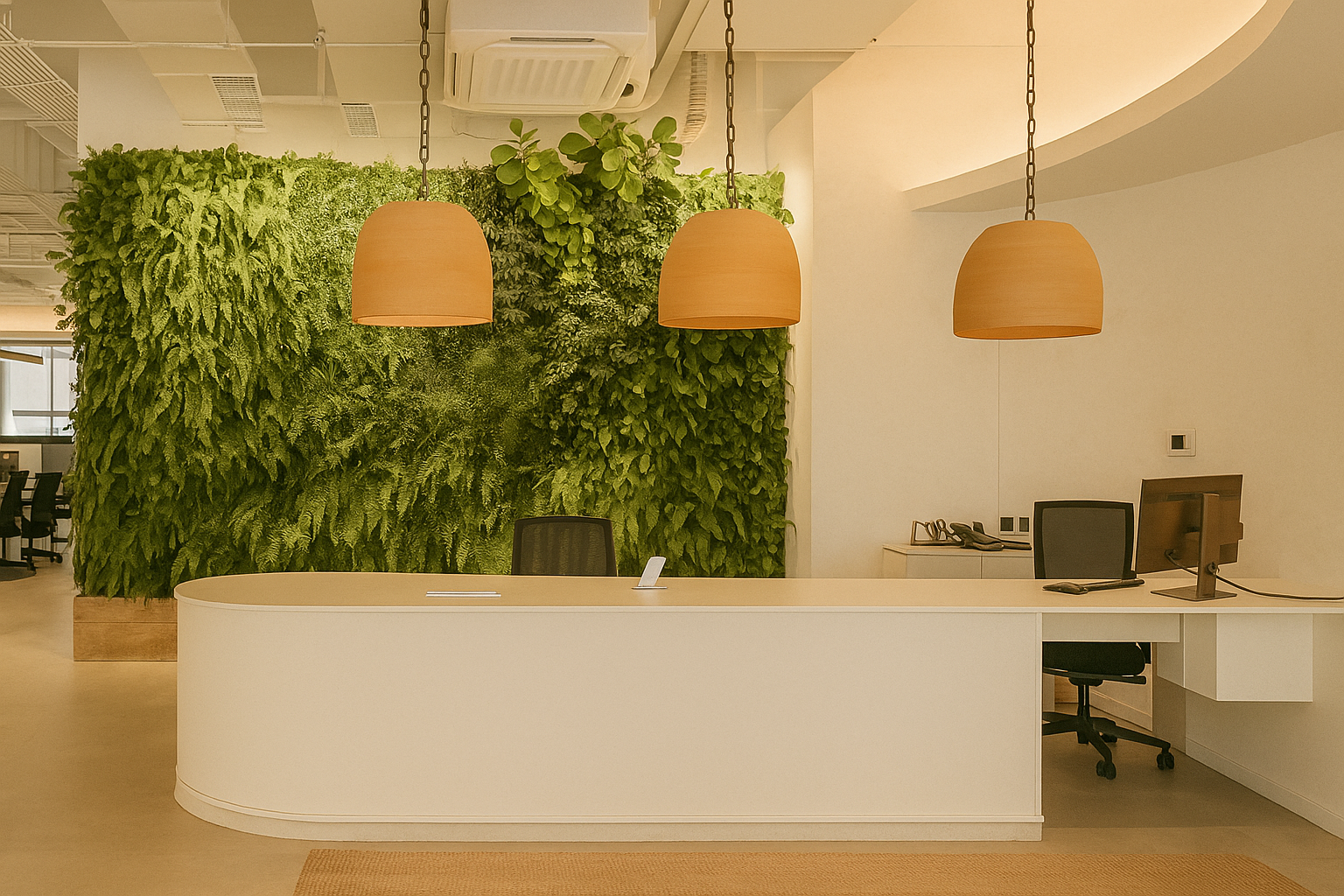 Located in the heart of Málaga Towers, this interior design project redefines the modern workspace through a calm, nature-inspired atmosphere that seamlessly blends aesthetics and function. Overlooking the Mediterranean and surrounded by contemporary architecture, the design was born with a clear purpose: to create a harmonious, fluid, and sensory environment where working feels natural.