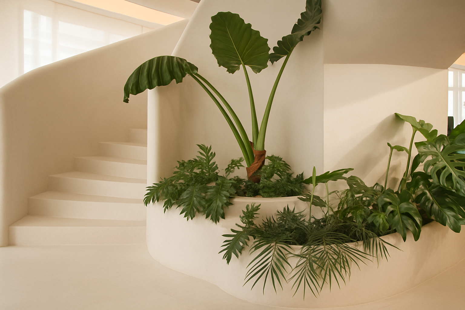Taking inspiration from the gentle movement of the waves, the design language incorporates soft lines, warm materials, and an organic palette. Curved forms, undulating ceilings, and lush vegetation connect the interior with the natural rhythm of the sea. Every corner is thoughtfully curated to foster focus and comfort—spaces that invite both productivity and pause.