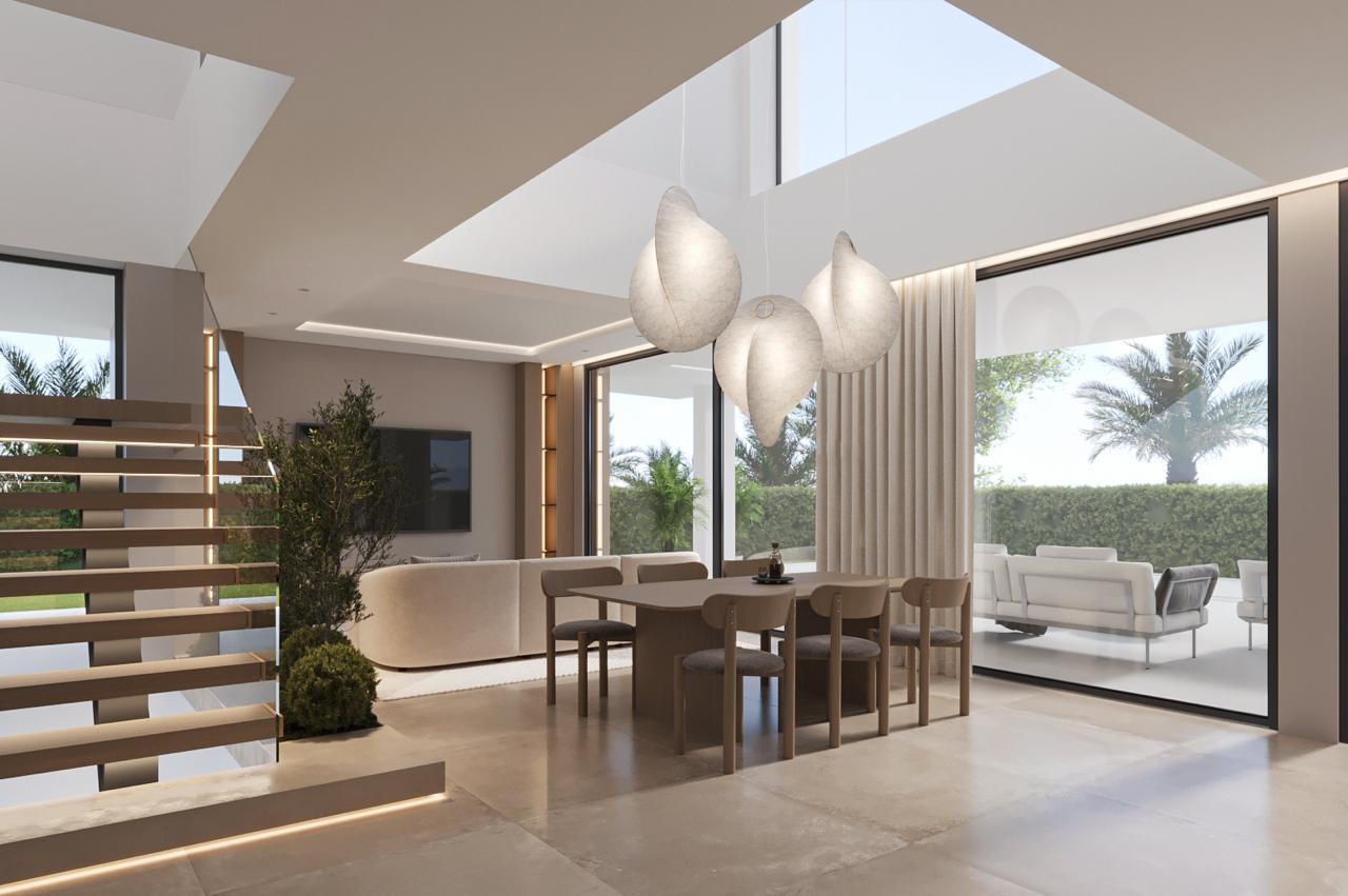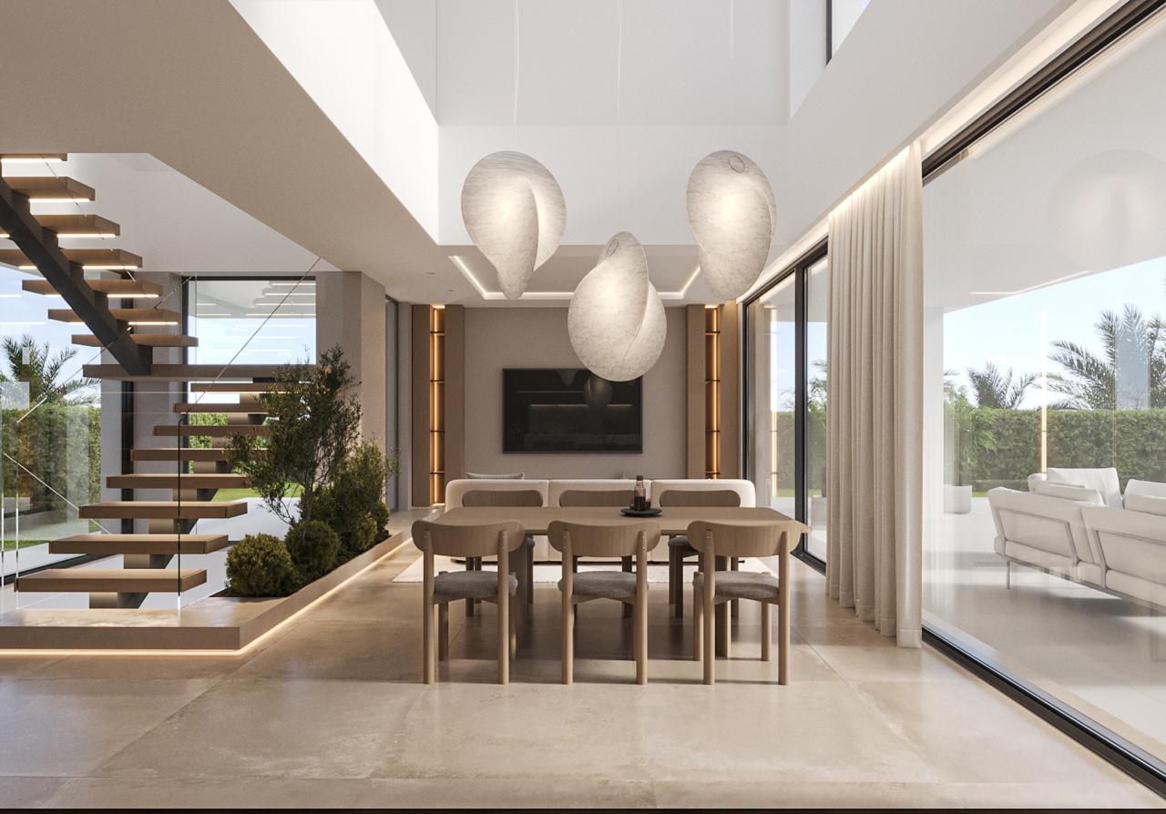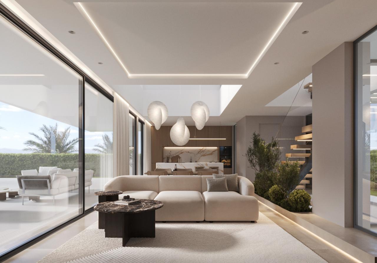 This interior design project in Marbella is an ode to serenity, noble materials, and the art of intentional living. From the very first glance, the interior architecture establishes a harmonious dialogue between clean lines, organic elements, and a soft, neutral palette that enhances natural light and strengthens the connection with the outdoors.